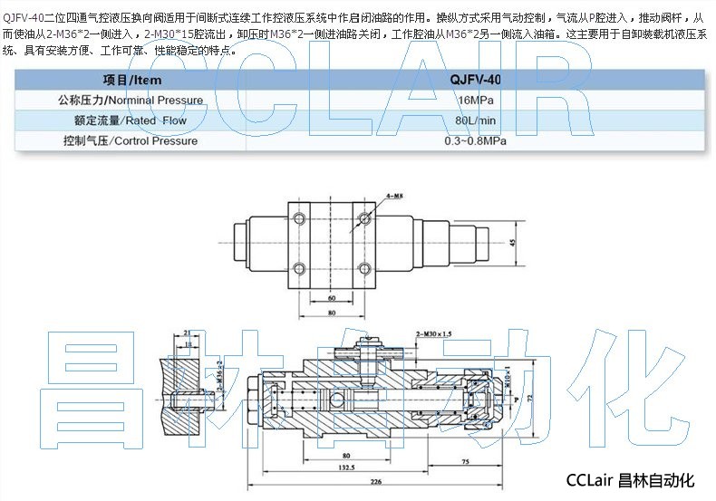 QJFV-40,氣控液壓換向閥