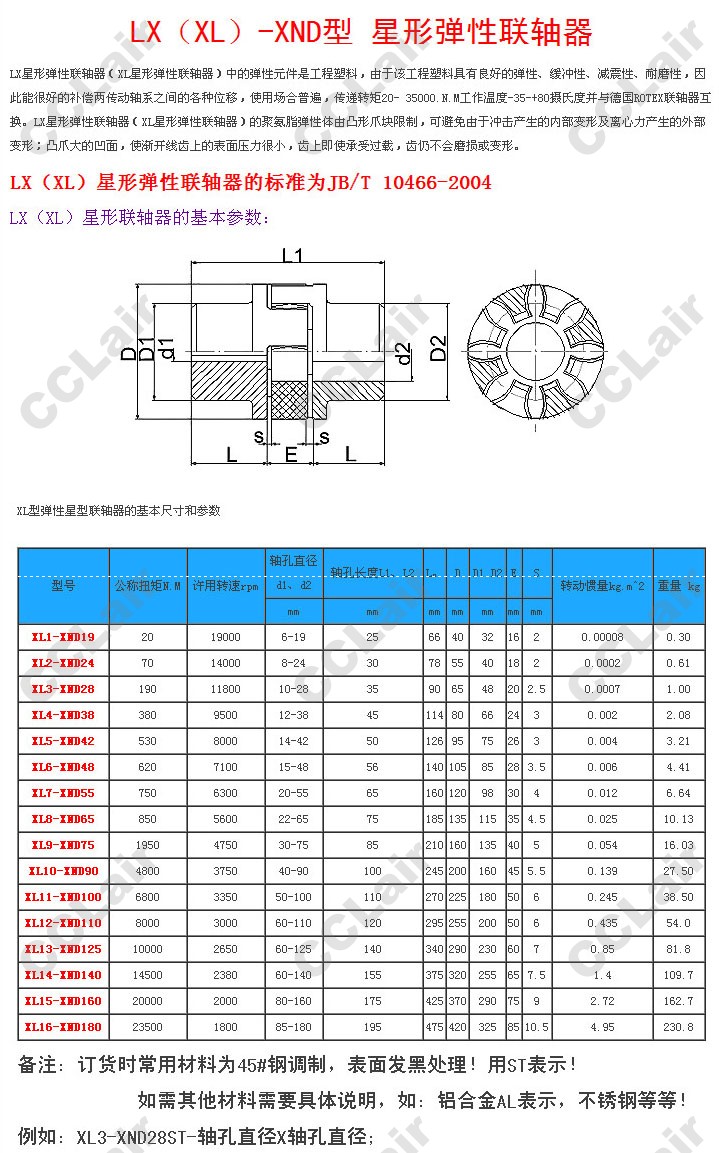 詳細信息 XL1-XND19,XL2-XND24,XL4-XND38,XL5-XND42,XL7-XND55,XL8-XND65,XL9-XND75,XL10-XND90,星形彈性聯(lián)軸器