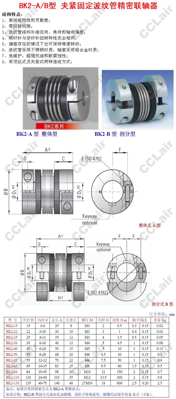 BK2-15,BK2-22,BK2-25,BK2-30,BK2-40,BK2-50,BK2-55,BK2-65,BK2-84,BK2-110,BK2-135,波紋管精密聯(lián)軸器