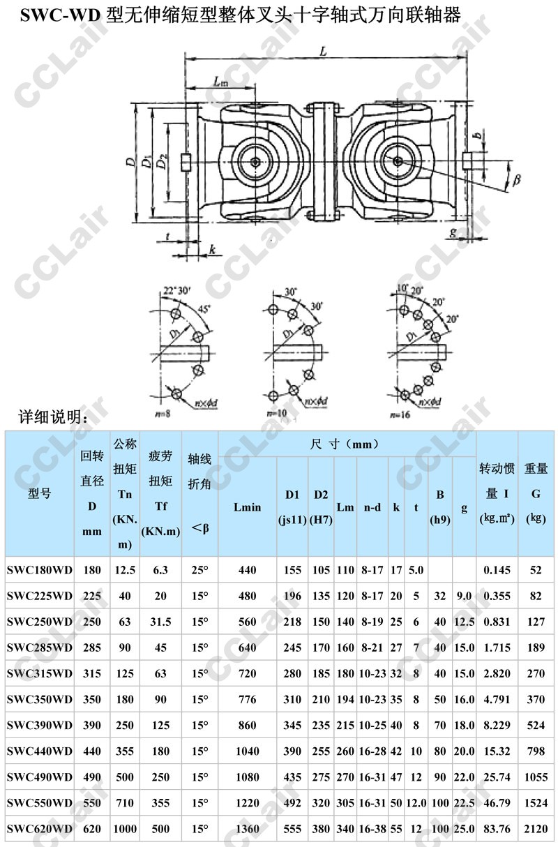 詳細信息 SWC180WD,SWC285WD,SWC315WD,SWC350WD,SWC490WD,SWC550WD,SWC620WD,無(wú)伸縮短式萬(wàn)向聯(lián)軸器