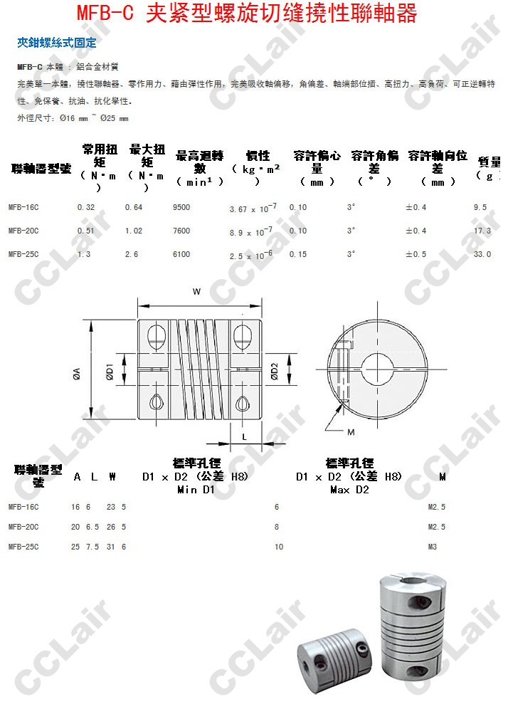 詳細信息 MFB-16C,MFB-20C,MFB-25C,夾緊型螺旋切縫撓性聯(lián)軸器