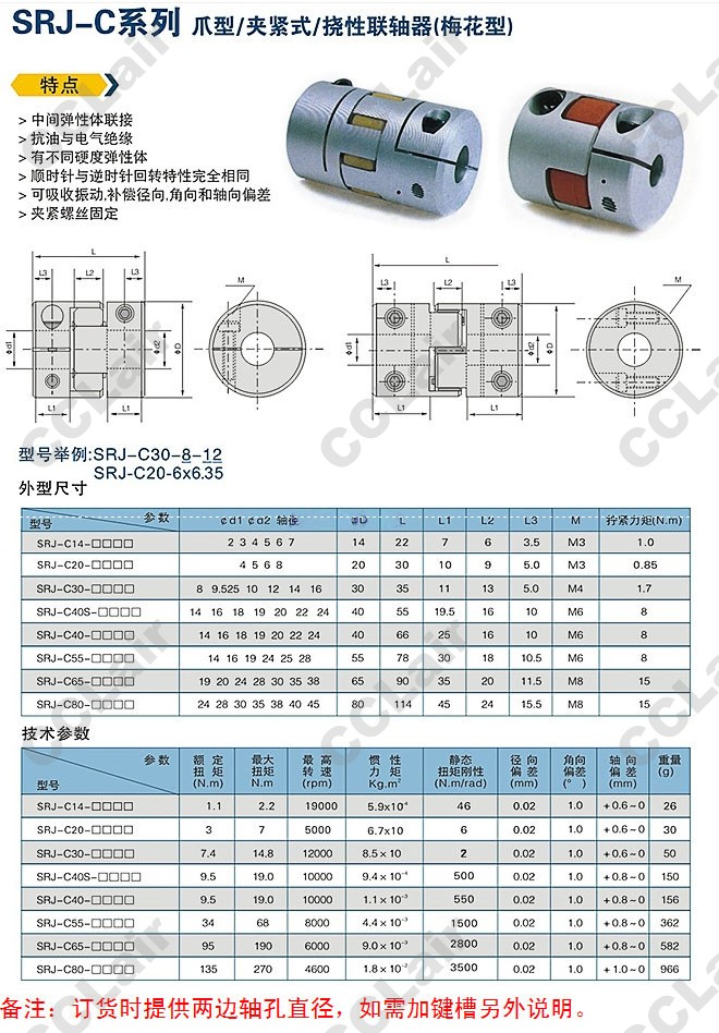 SRJ-C14,SRJ-C20,SRJ-C30,SRJ-C40S,SRJ-C40,SRJ-C55,SRJ-C65,SRJ-C80,梅花形聯(lián)軸器