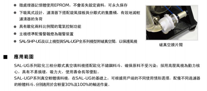 SAL-1HP-UG,SAL-2HP-UG,SAL-3HP-UG,SAL-5HP-UG,SAL-5HP-UG-D,SAL-10HP-UG,SAL-10HP-UG-D,SAL-20HP-UG-D歐化分離式真空填料機
