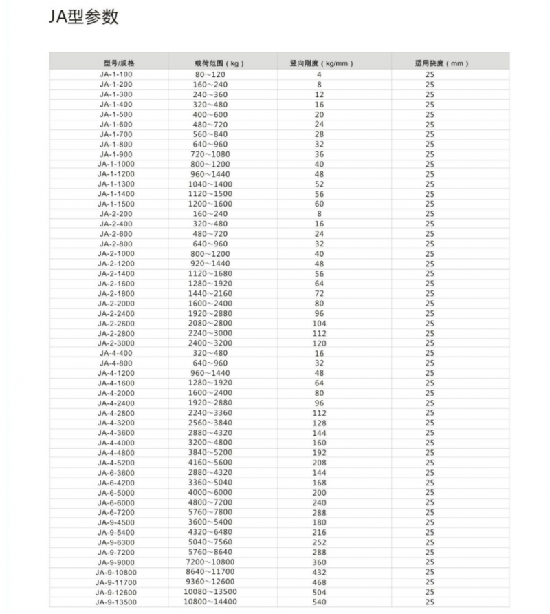 可調式阻尼彈簧減振器 JA-1-100,JA-1-200,JA-1-300,JA-1-400,JA-1-500,JA-1-600,JA-1-700