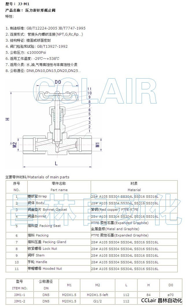 詳細信息 JJM1-1,JJM1-2, 壓力表針形截止閥