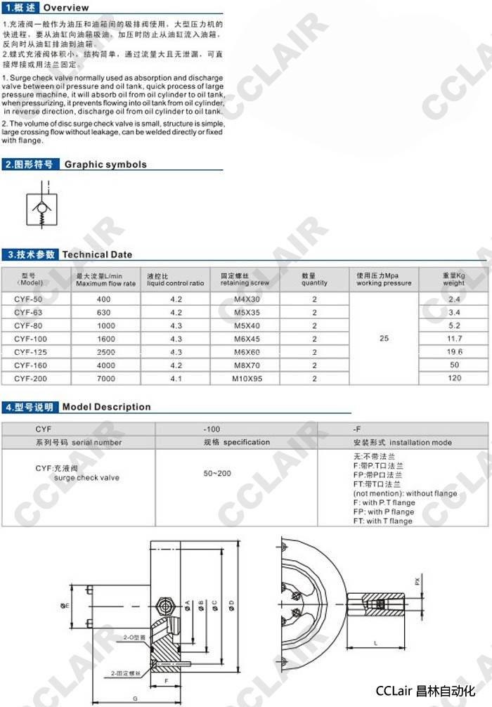 詳細信息 CYF-50,CYF-63,CYF-80,CYF-100,CYF-125,CYF-160,CYF-200,充液閥