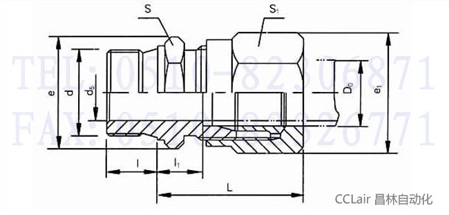 公稱(chēng)壓力J級,管子外徑D0為14mm的卡套式端直通管接頭: