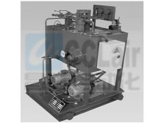 系統裝有兩套可調流量微量計量泵,正常工作時(shí),油泵一臺工作,一臺備用,在特殊需要時(shí)亦可允許同時(shí)起動(dòng)兩泵,系統最高壓力為10MPa,最低壓力為4MPa,油缸上行速度由變量微量油泵來(lái)調定,油缸下行時(shí)的速度由節流閥來(lái)調定,油溫是由裝在油箱上的雙金屬電接點(diǎn)溫度來(lái)控制電加熱器的關(guān)閉,油站系統有一臺精度