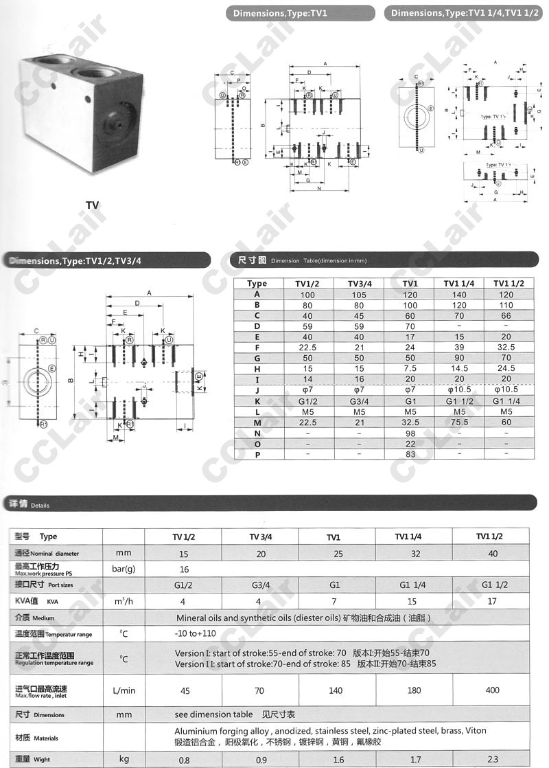 TV1/2,TV3/4,TV1,TV11/4,TV11/2,溫控閥