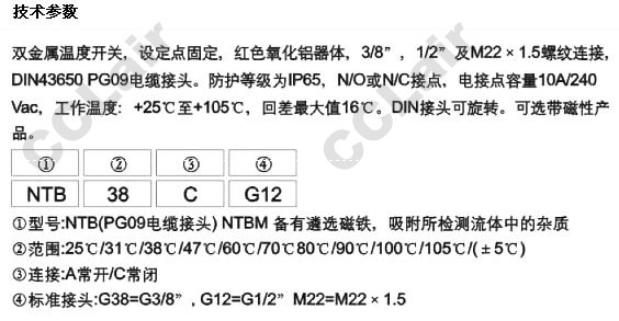 詳細信息 NTB38A,NTB60A,NTB70A,NTB80A,NTB90A,NTB100A,NTB105A,NTBM25A-G38,NTBM31A-G12,NTBM38A,雙金屬溫度開(kāi)關(guān)