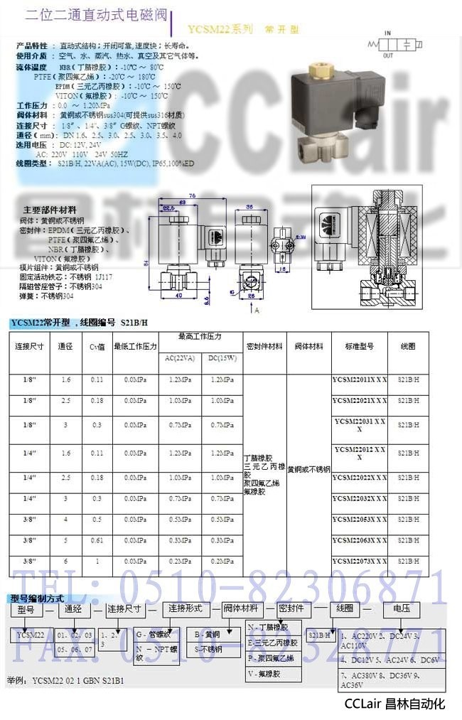 YCSM22023,YCSM22031,YCSM22032,YCSM22033,YCSM22051,二位二通直動(dòng)式電磁閥