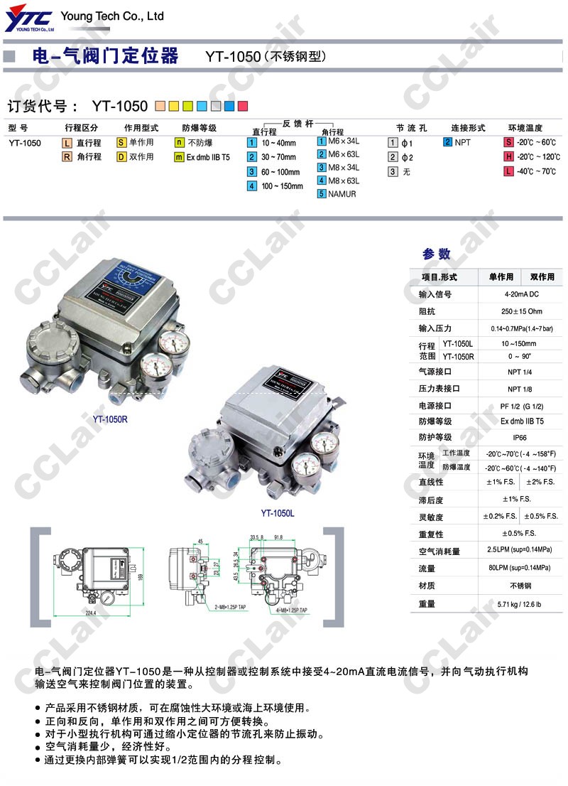 YT-1050R,YT-1050L,YTC電-氣閥門(mén)定位器