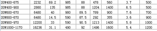 SOW350-520,SOW350-640(Ⅰ),SOW400-550(Ⅰ),SOW400-550,SOW400-600(Ⅰ),