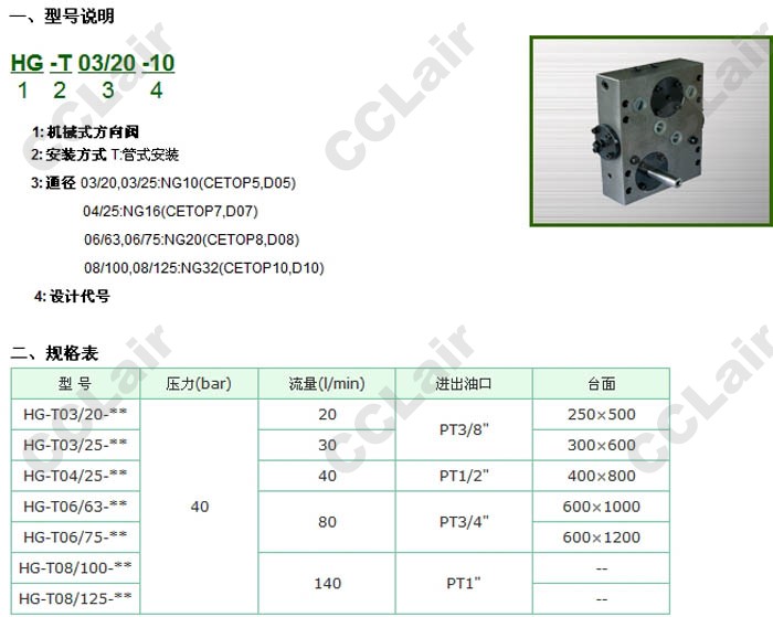 HG-T03/20-10,HG-T04/25-10,HG-T06/63-10,HG-T06/75-10,HG-T08/100-10,HG-T08/125-10,方向閥