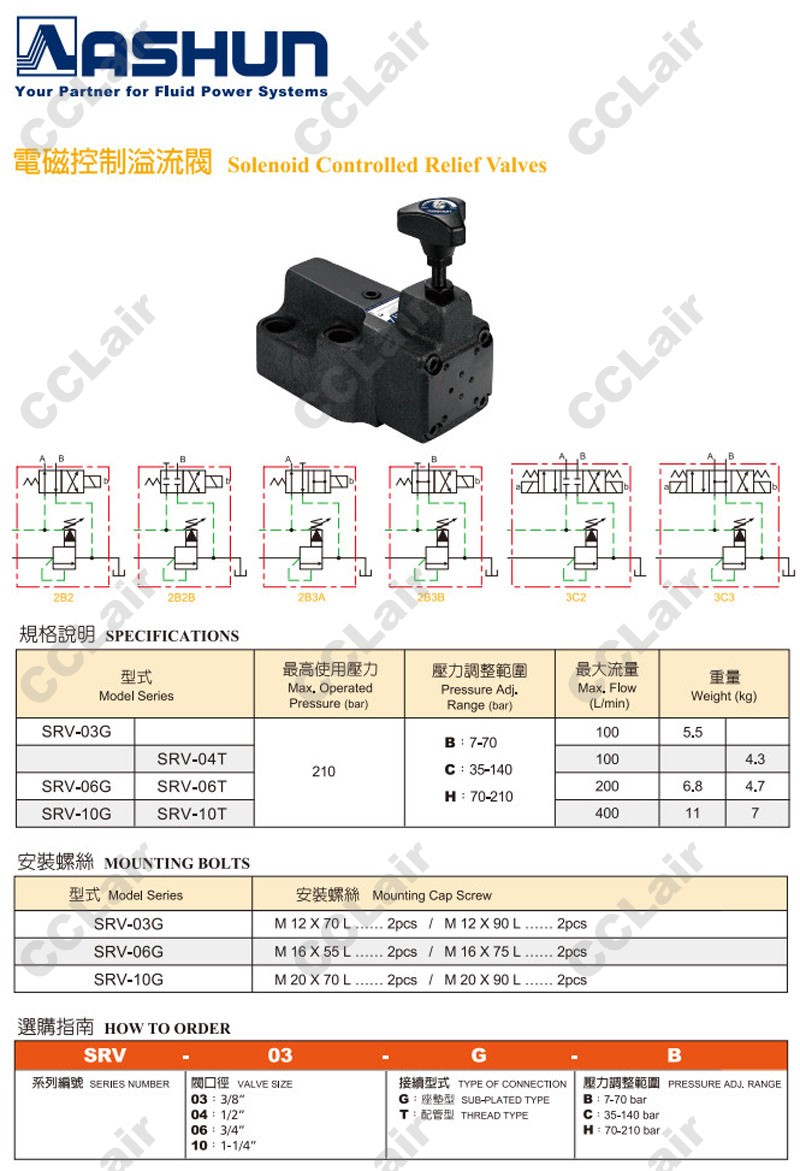 SRV-03G,SRV-04T,SRV-06G,SRV-06T,SRV-10G,SRV-10T,SRV-04T-B,SRV-10T-H,SRV-06T-B,ASHUN油順電磁控制溢流閥