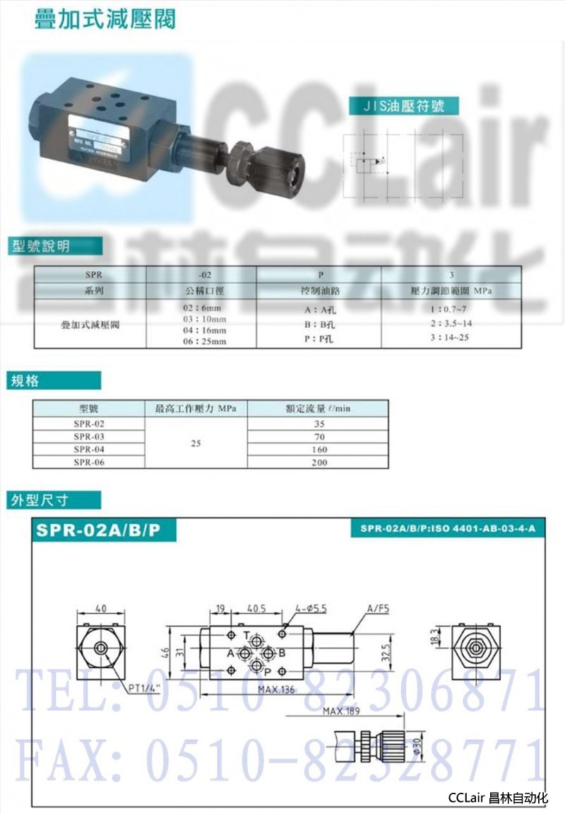 SPR-02A,SPR-02B,SPR-02P,SPR-03A,SPR-03B,SPR-03P,SPR-04A,疊加式減壓閥