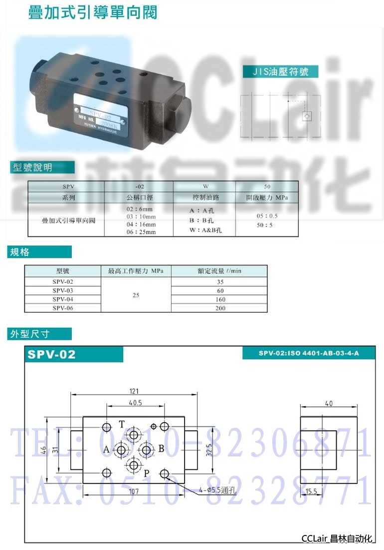 SPV-02-A,SPV-02-B,SPV-02-W,SPV-03-A,SPV-03-B,SPV-03-W,疊加式引導單向閥