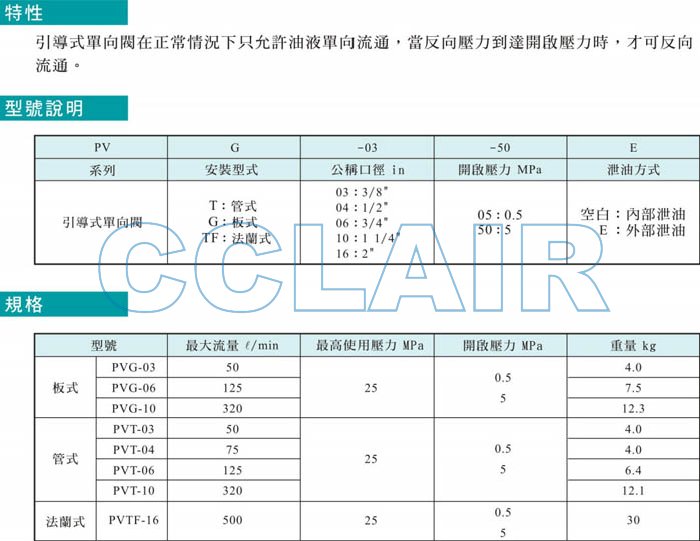 PVG-03,PVG-04,PVG-06,PVG-10,PVG-16,引導式單向閥