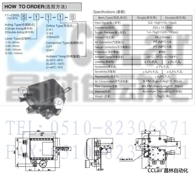 YT-1200L,氣-氣閥定位器(標準型)