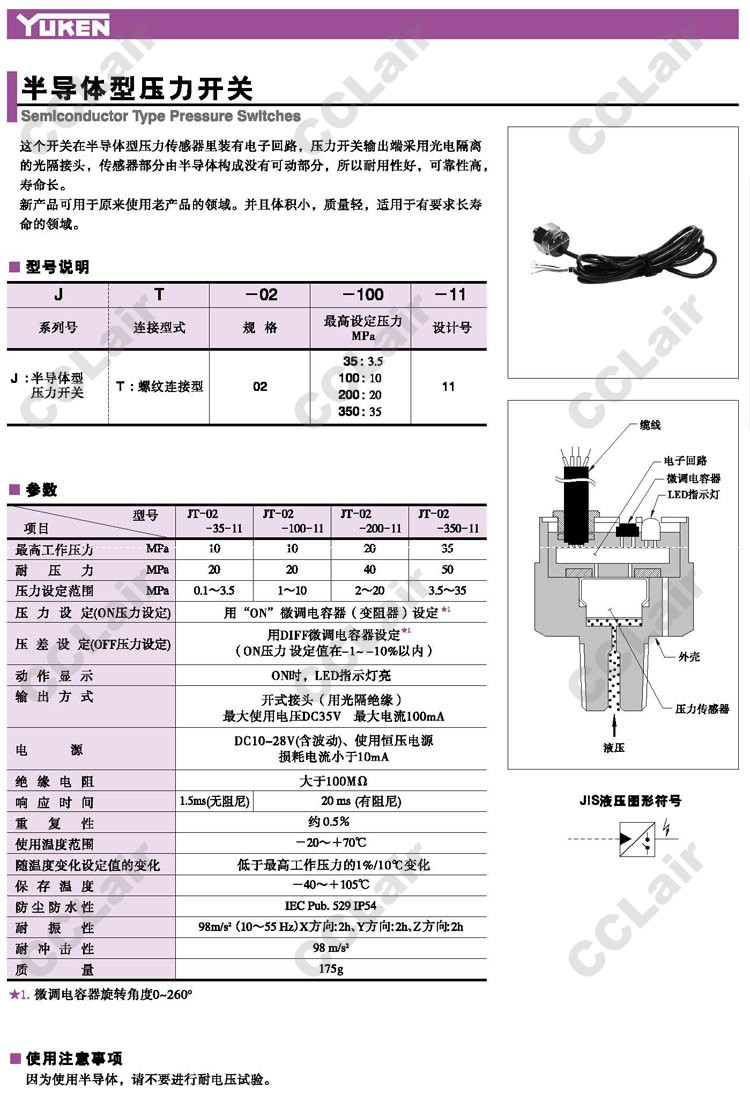 JT-02-35-11,JT-02-100-11,JT-02-200-11,JT-02-350-11,壓力開(kāi)關(guān),YUCIYUKEN榆次油研