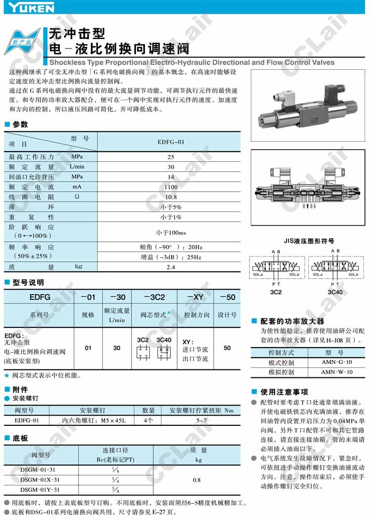EDFG-01-30-3C2-XY-50,EDFG-01-30-3C4-XY-50,電-液比例換向調速閥,YUCIYUKEN榆次油研