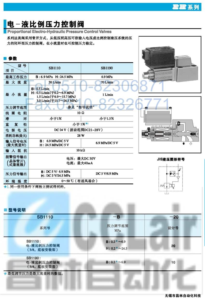 SB1110-B-20,SB1110-H-20,SB1190-B-10,電液比例壓力控制閥,榆次油研電液比例壓力控制閥,YUKEN電液比例壓力控制閥