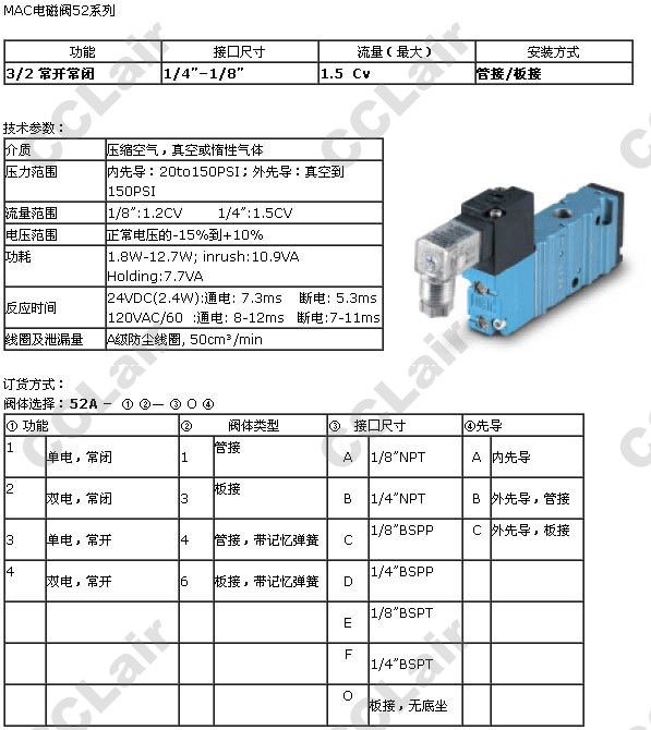 詳細信息 52A-11-A0A-DM-DDAA,52A-31,52A-14,52A-36,52A-21,52A-41,52A-33,52A-44,52A-34,52A-16,52A-13,電磁閥