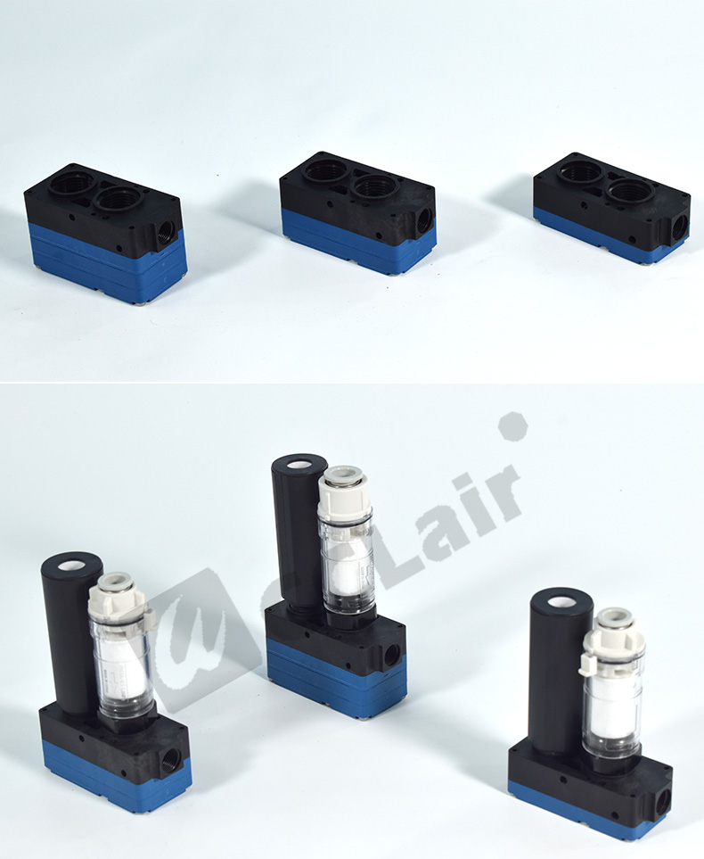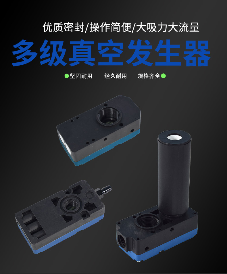 多級高真空型發(fā)生器的工作原理是利用噴管高速?lài)娚鋲嚎s空氣,?在噴管出口形成射流,?產(chǎn)生卷吸流動(dòng)。?這種工作原理使得噴管出口周?chē)目諝獠粩嗟乇怀槲撸?從而使吸附腔內的壓力降至大氣壓以下,?形成一定真空度。