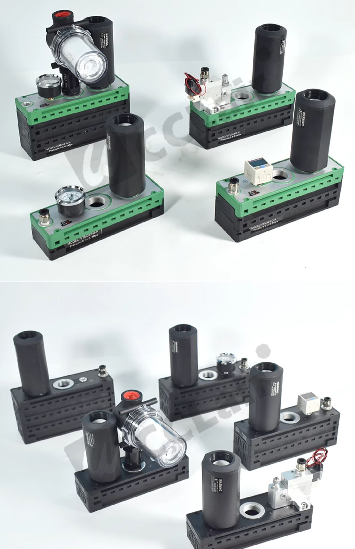VTM301/302/303/304/305/306-D-N, VTM301/302/303/304/305/306-D-N-A, VTM301/302/303/304/305/306-D-V, VTM301/302/303/304/305/306-D-N,藍殼/高真空型空氣發(fā)生器 詳細信息 真空發(fā)生器的工作原理主要依賴(lài)于拉瓦爾噴管、?負壓腔和接口管等組件。?氣流從供氣口進(jìn)入,?經(jīng)過(guò)噴管射出,?形成高速射流。?由于氣體的黏性,?高速射流會(huì )吸走負壓腔內的氣體,?從而在該腔內形成真空。