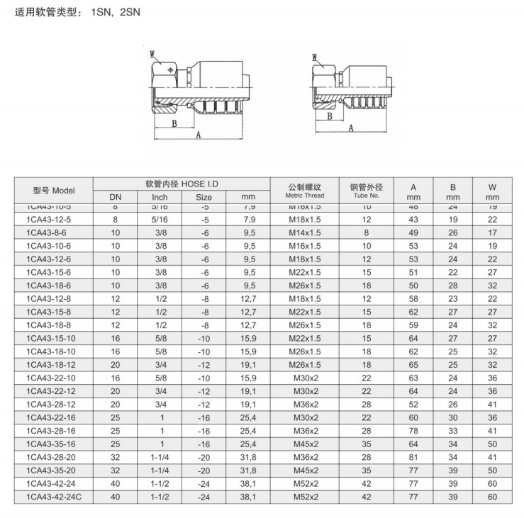 瀏覽次數:7431CA43-6-4,1CA43-8-4,1CA43-10-4,1CA43-12-4,1CA43-8-5,1CA43-0-5,扣壓式軟管接頭 |