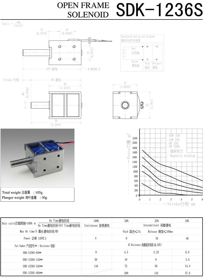 SDK-1236S-6A,SDK-1236S-12A,SDK-1236S-24A,SDK-1236S-48A,直動(dòng)電磁鐵