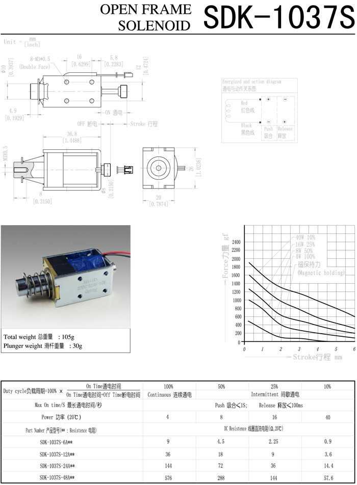 SDK-1037S-6A,SDK-1037S-12A,SDK-1037S-24A,SDK-1037S-48A,直動(dòng)電磁鐵