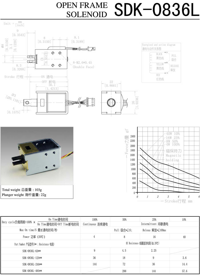 詳細信息 SDK-0836L-6A,SDK-0836L-12A,SDK-0836L-24A,SDK-0836L-48A,直動(dòng)電磁鐵