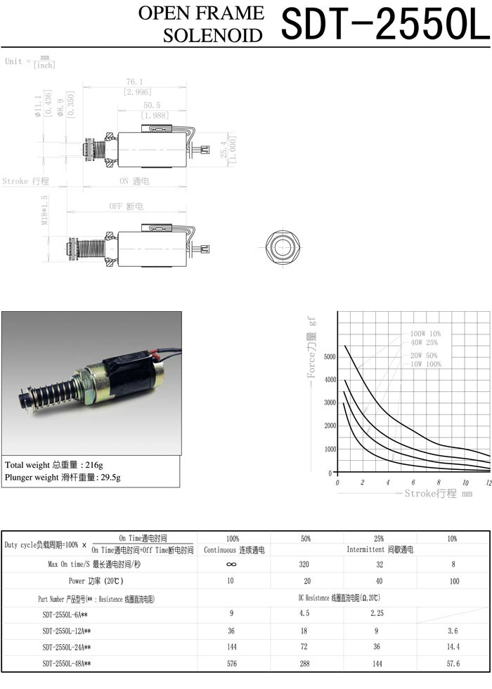 SDT-2550L-6A,SDT-2550L-12A,SDT-2550L-24A,SDT-2550L-48A,直動(dòng)電磁鐵