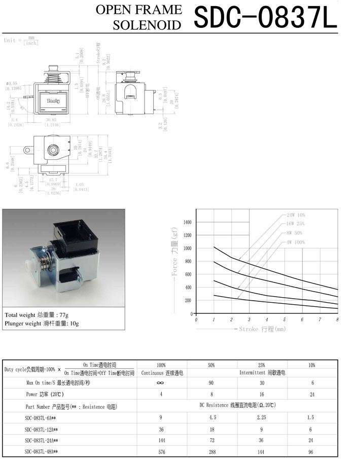 SDC-0837L-06A,SDC-0837L-12A,SDC-0837L-24A,SDC-0837L-48A,直動(dòng)電磁鐵