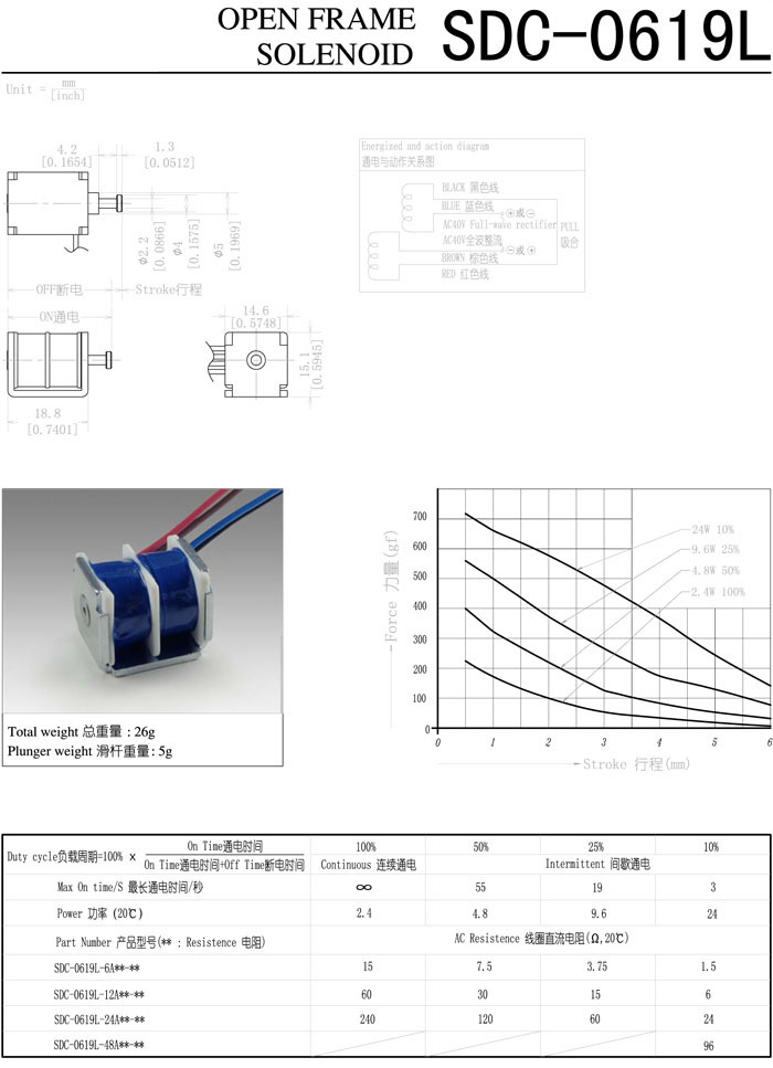 SDO-0619L-6A,SDO-0619L-12A,SDO-0619L-24A,SDO-0619L-48A,直動(dòng)電磁鐵