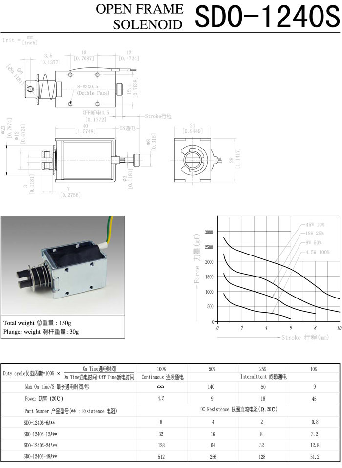 SDO-1240S-6A,SDO-1240S-12A,SDO-1240S-24A,SDO-1240S-48A,直動(dòng)電磁鐵