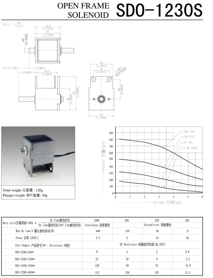 SDO-1230S-6A,SDO-1230S-12A,SDO-1230S-24A,SDO-1230S-48A,直動(dòng)電磁鐵