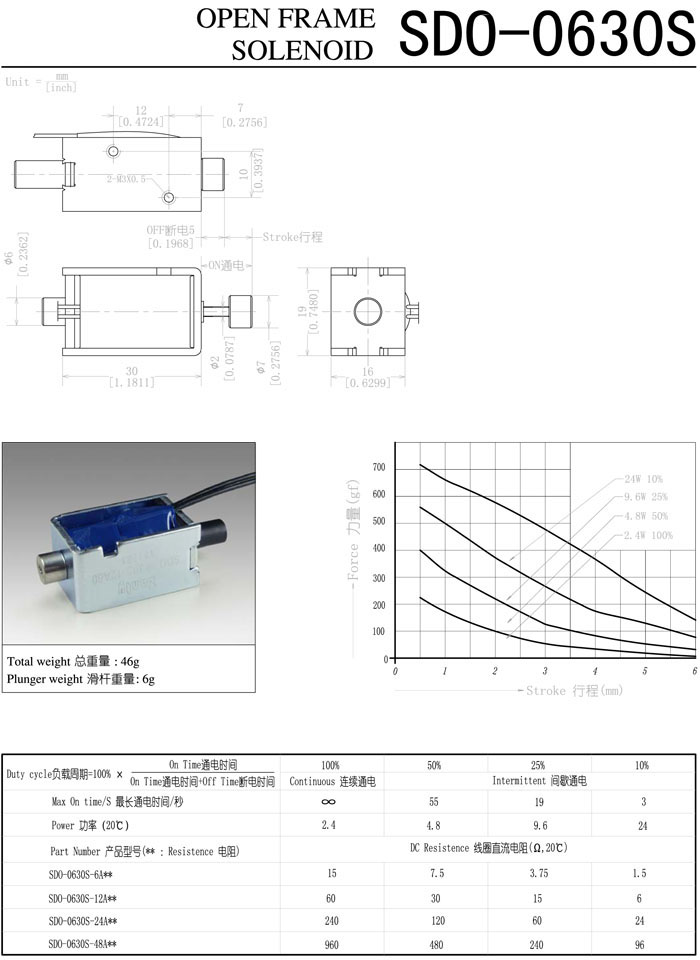 SDO-0630S-6A,SDO-0630S-12A,SDO-0630S-24A,SDO-0630S-48A,直動(dòng)電磁鐵