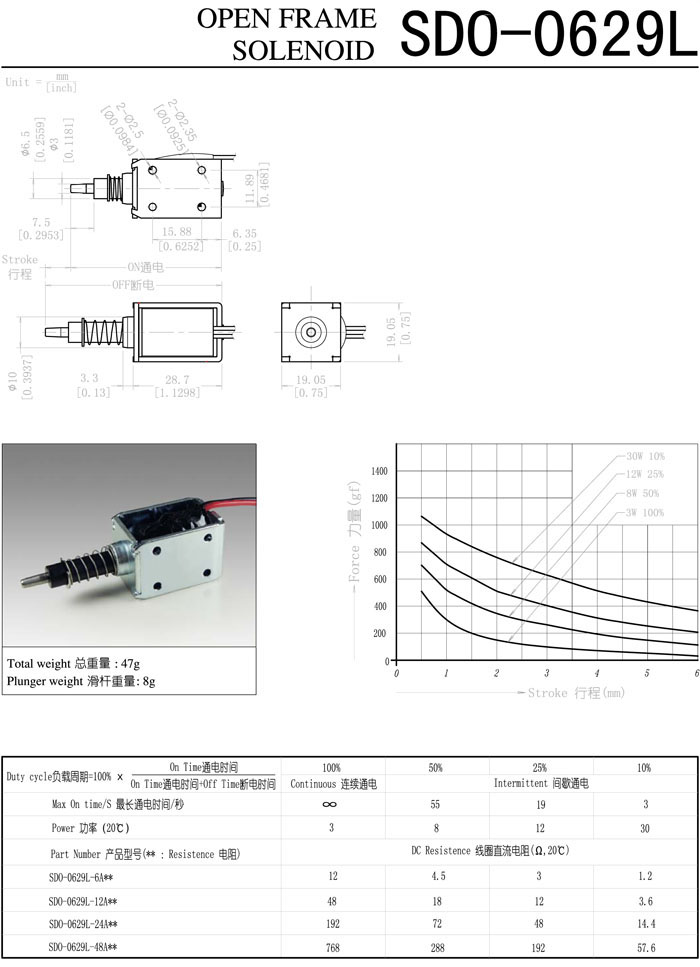 SDO-0629L-6A,SDO-0629L-12A,SDO-0629L-24A,SDO-0629L-48A,直動(dòng)電磁鐵