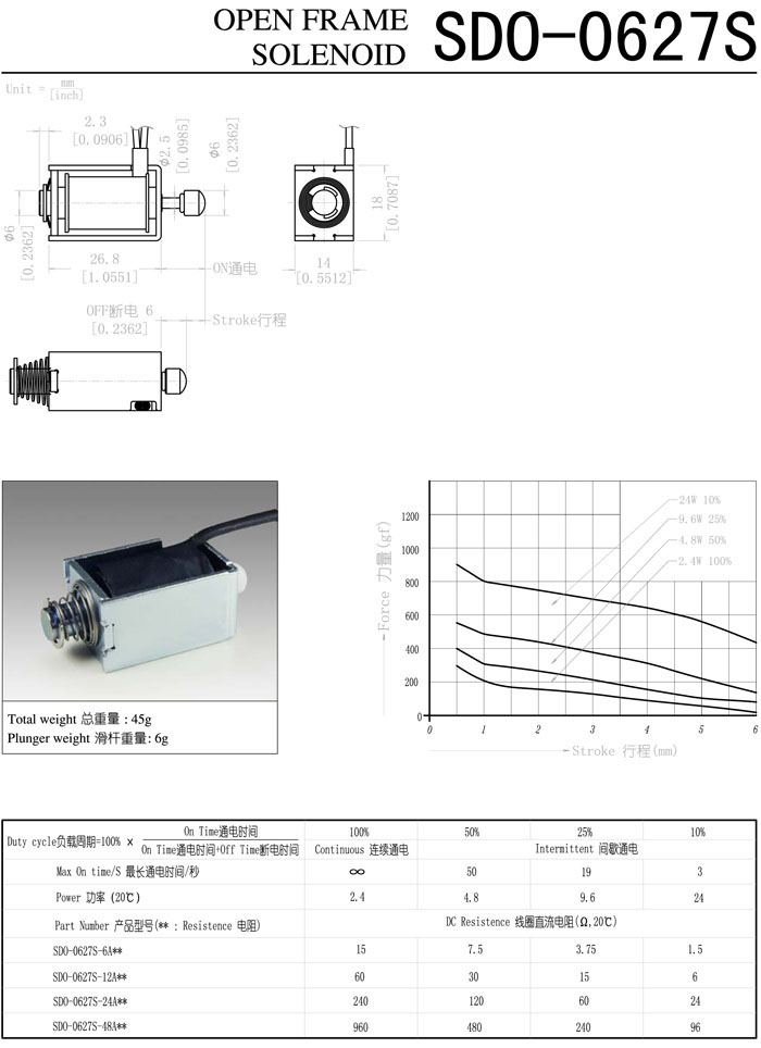 SDO-0627S-6A,SDO-0627S-12A,SDO-0627S-24A,SDO-0627S-48A,直動(dòng)電磁鐵