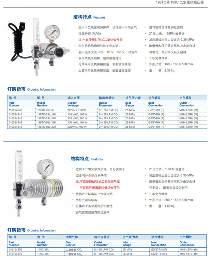198TC-25L-36,198TC-25L-110,198TC-25L-220,198TC-50L-110,198TC-50L-220,二氧化碳減壓器