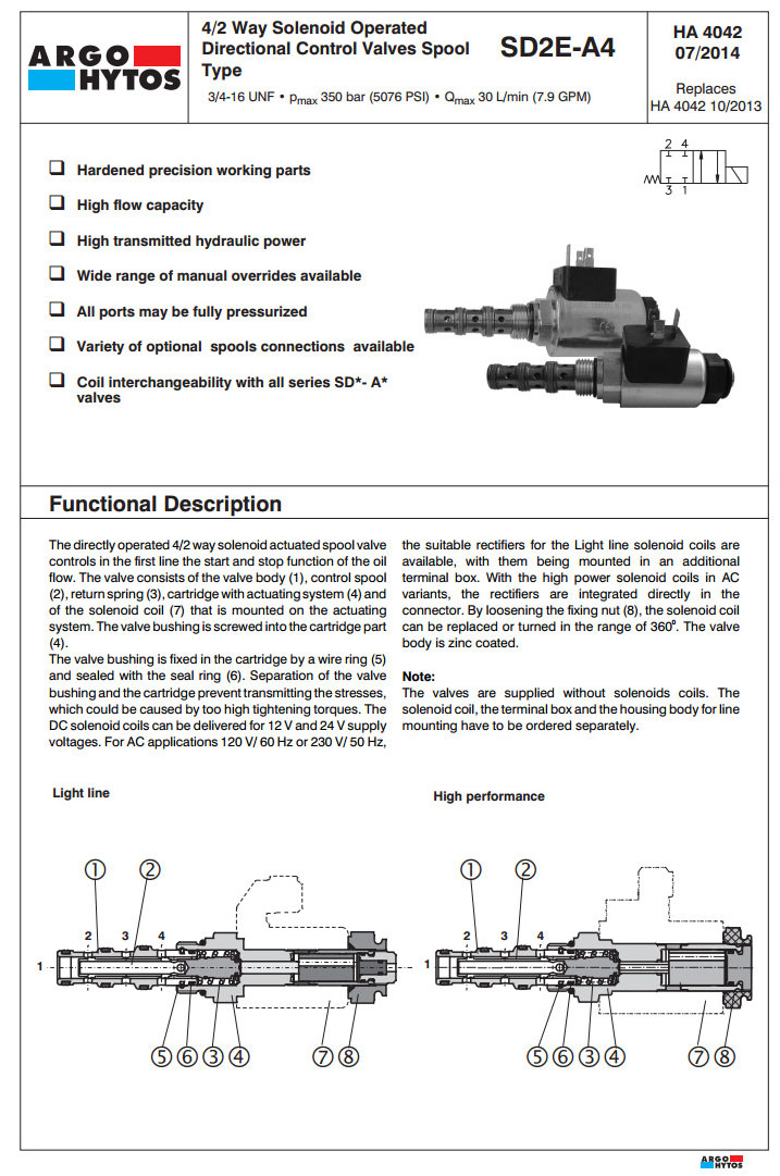 SD2E-A4/L,SD2E-A4/H,SD2E-A4/L2Z51M5,SD2E-A4/H2R21M9,SD2E-A4/L2Y11M9,ARGO電磁方向控制閥閥芯