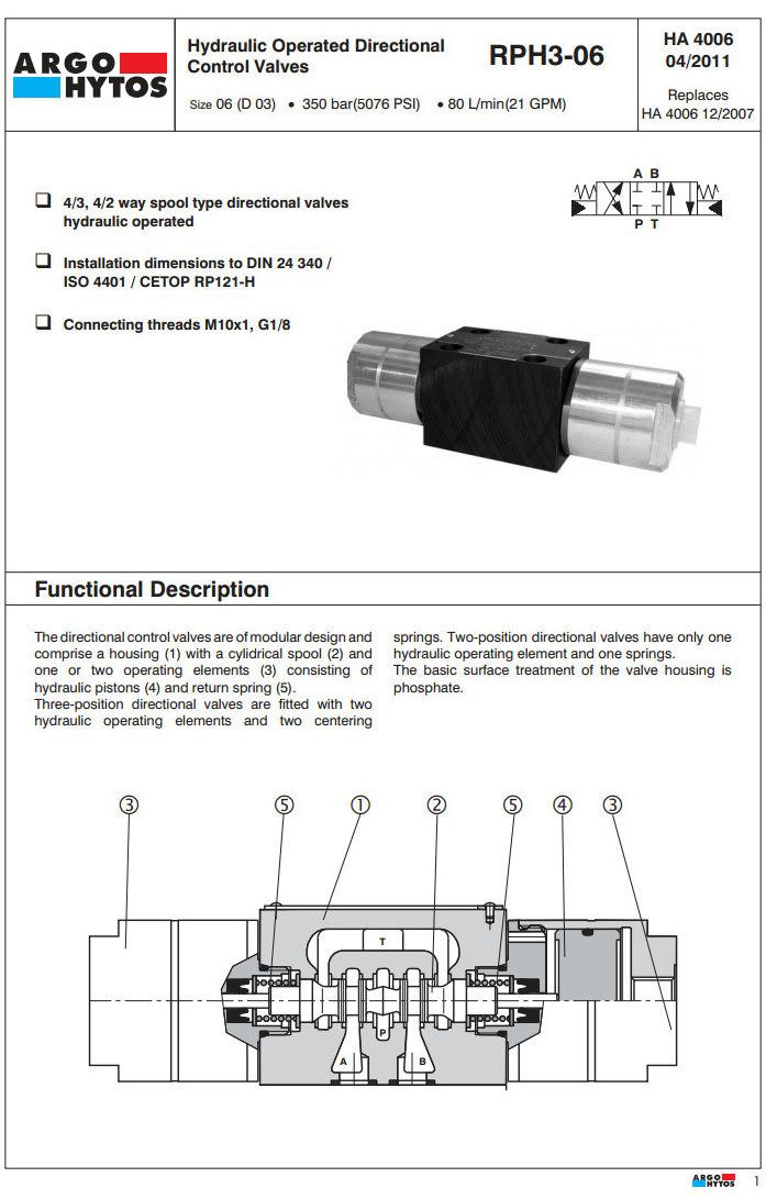 RPH3-062,RPH3-063,RPH3-062Z11/11,RPH3-062J15/12,RPH3-063Z11/11,RPH3-063J15/12,ARGO液壓方向控制閥