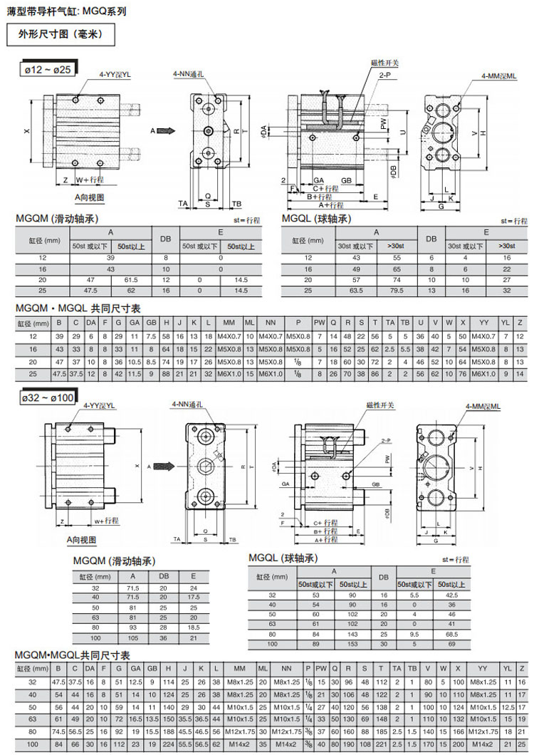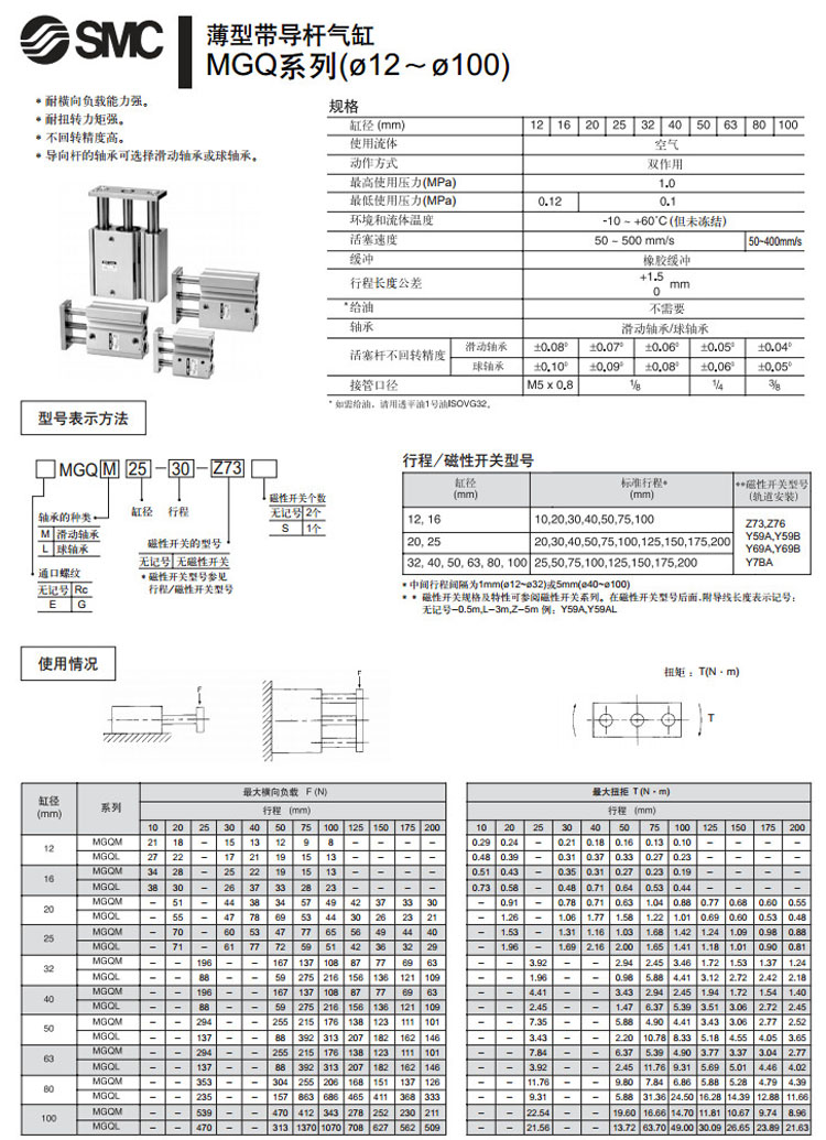 MGQM12,MGQM16,MGQM20,MGQM25,MGQM32,MGQM40,MGQM50,MGQM63,MGQM80,MGQM100,MGQM12-10,SMC薄型帶導桿氣缸