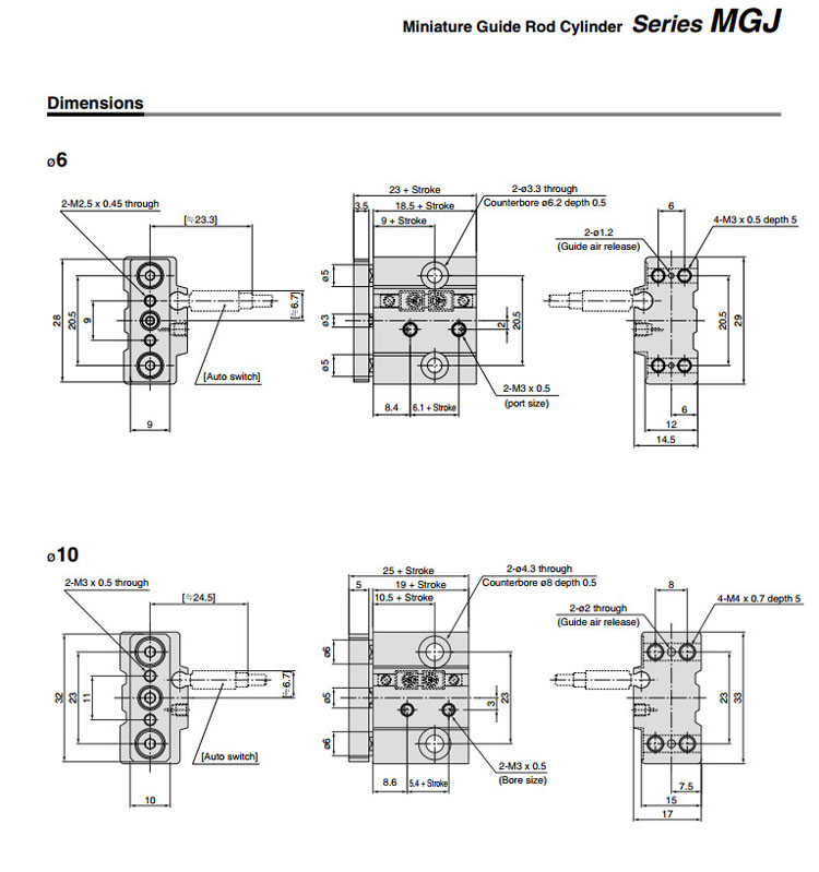 MGJ6-5,MGJ6-10,MGJ6-15,MGJ10-5,MGJ10-10,MGJ10-15,MGJ10-25,SMC微型帶導桿氣缸