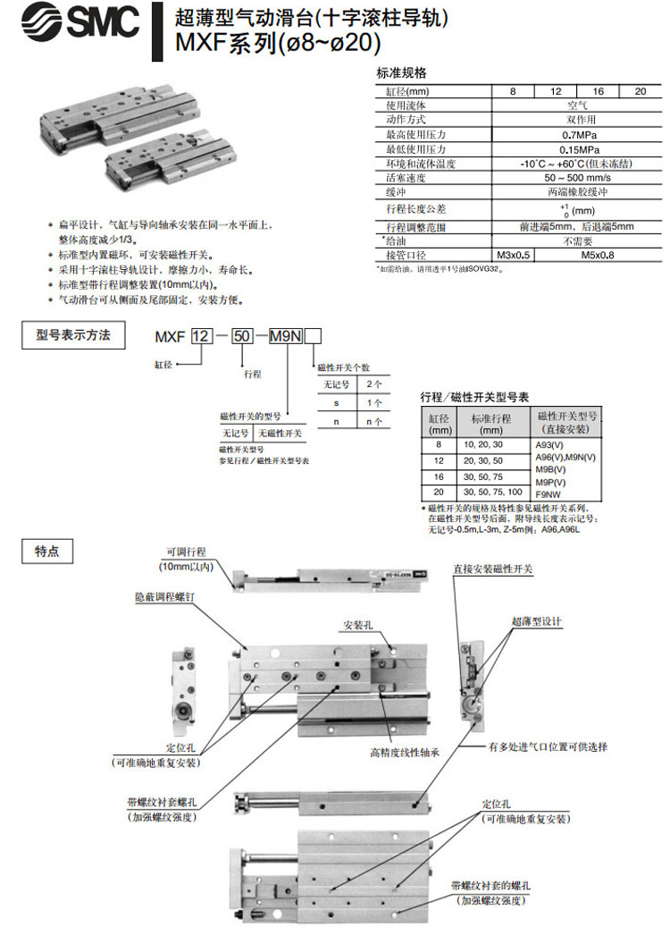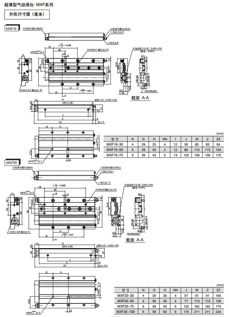 MXF8-10,MXF12-20,MXF16-30,MXF20-30,MXF8-20,MXF12-30,MXF16-50,MXF20-50,SMC超薄型氣動(dòng)滑臺氣缸