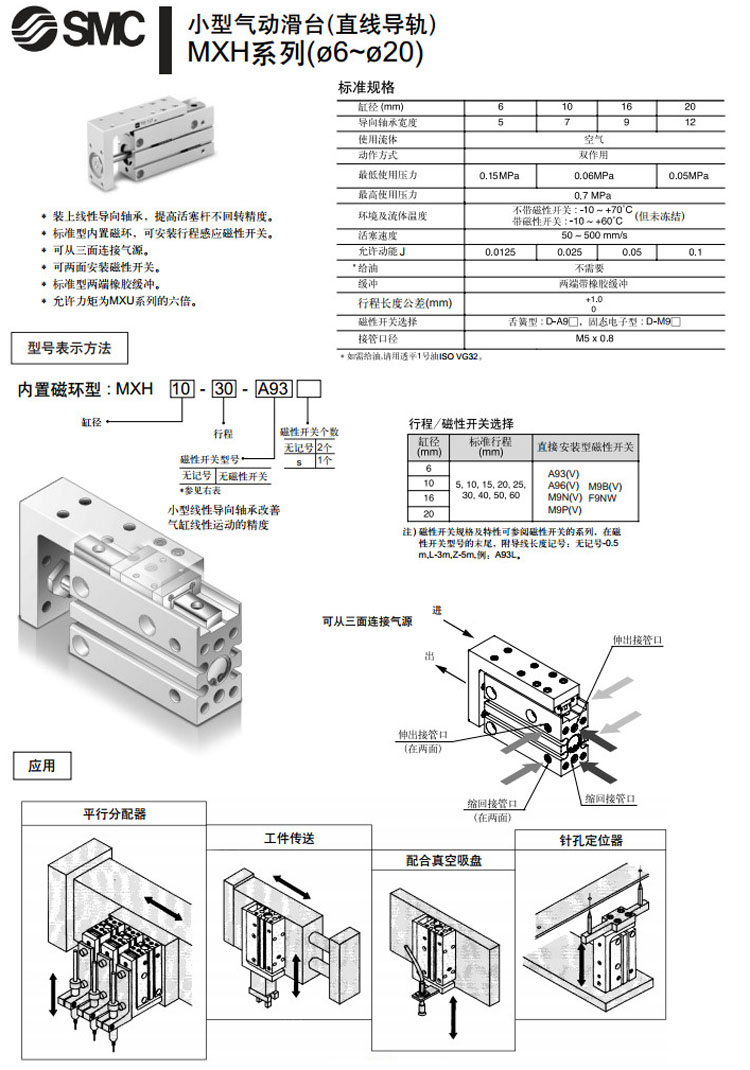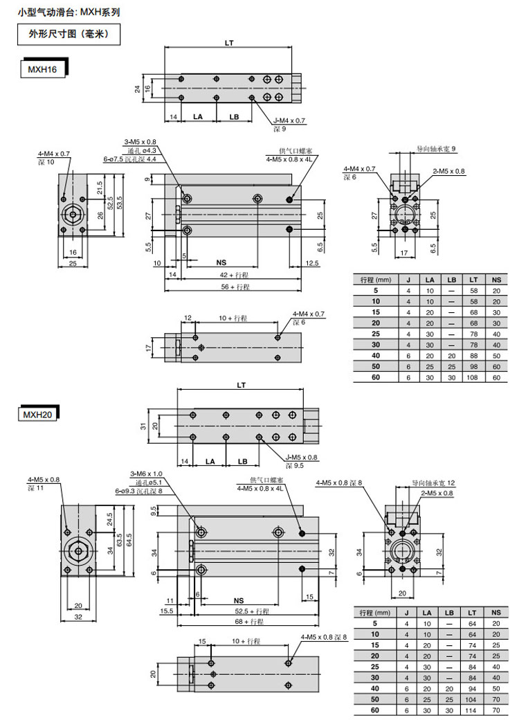 MXH6-5,MXH10-5,MXH16-5,MXH20-5,MXH6-10,MXH10-10,MXH16-10,MXH20-10,SMC小型氣動(dòng)滑臺氣缸