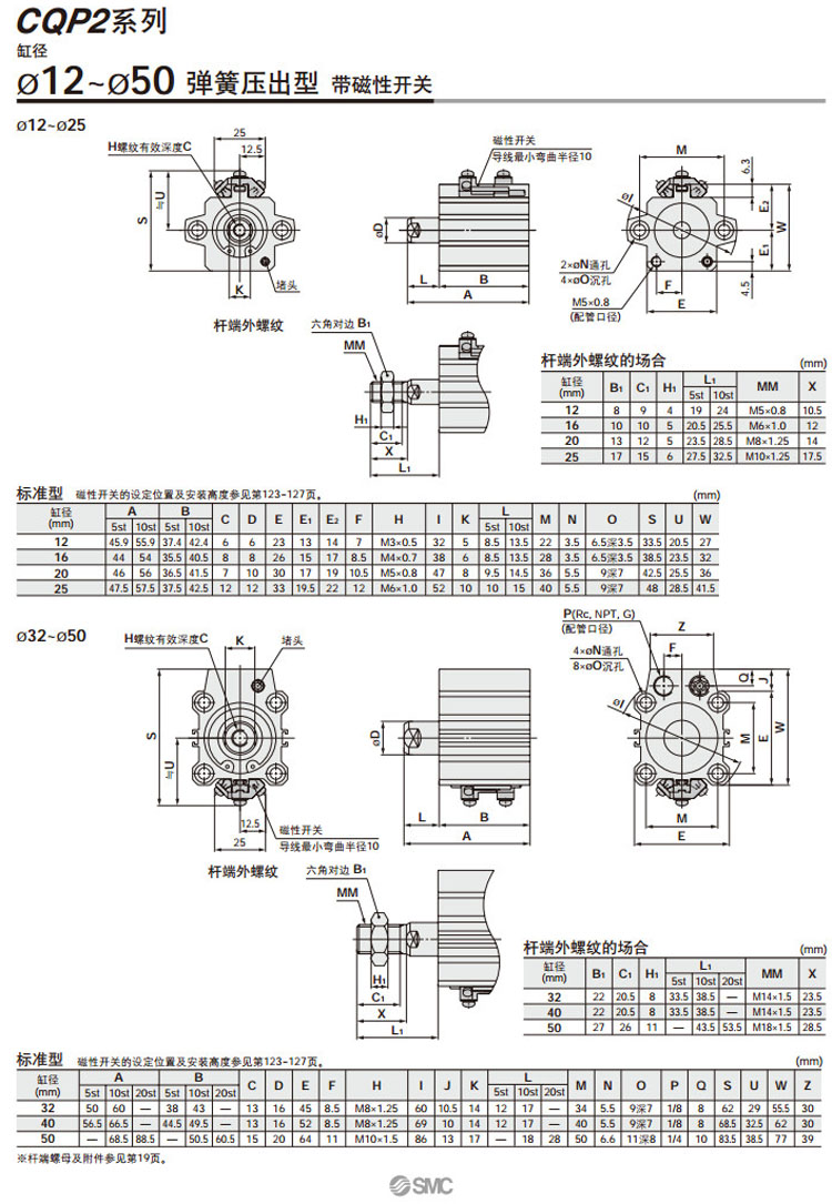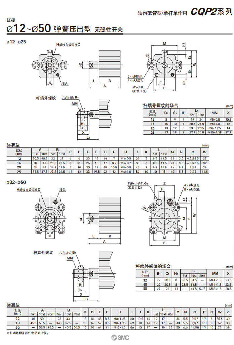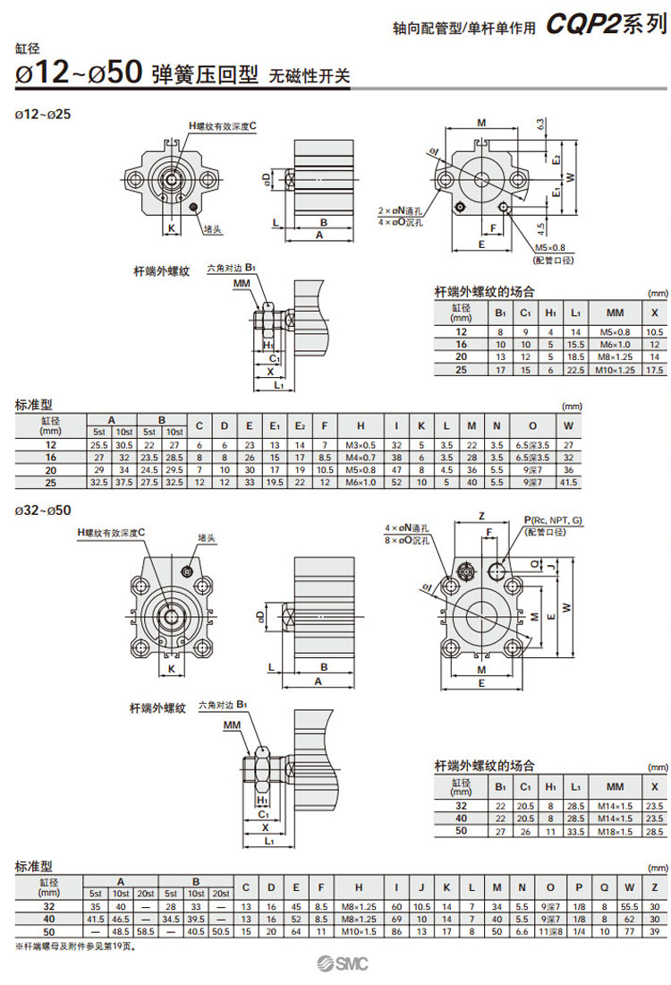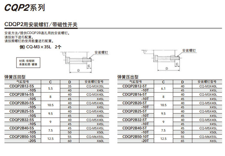 CQP2B12-5S,CQP2BH20-5S,CDQP2B12-5S,CDQP2BH20-5S,CQP2B12-10T,CQP2BH20-10T,SMC軸向配管型氣缸