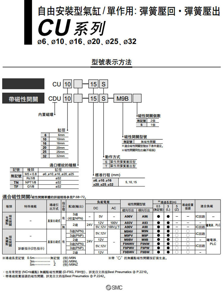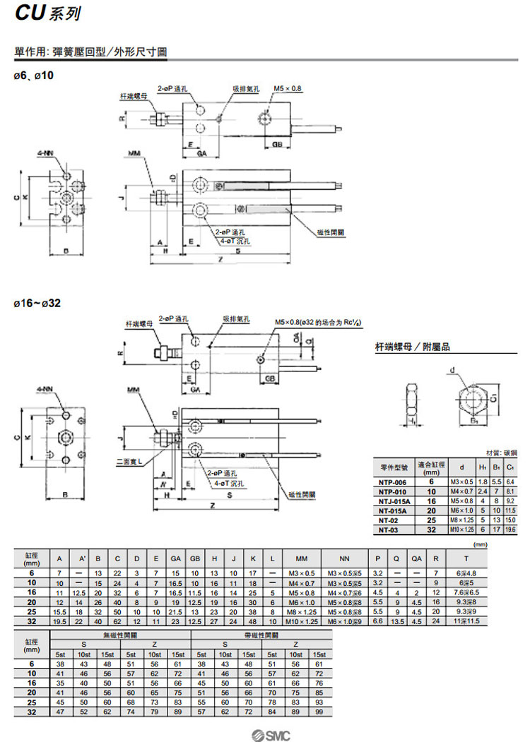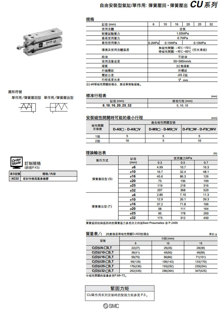CU6-5S,CU10-5S,CU16-5S,CU25-5S,CU32-5S,CDU6-5S,CDU10-5S,CDU16-5S,CDU25-5S,CDU32-5S,SMC自由安裝型氣缸
